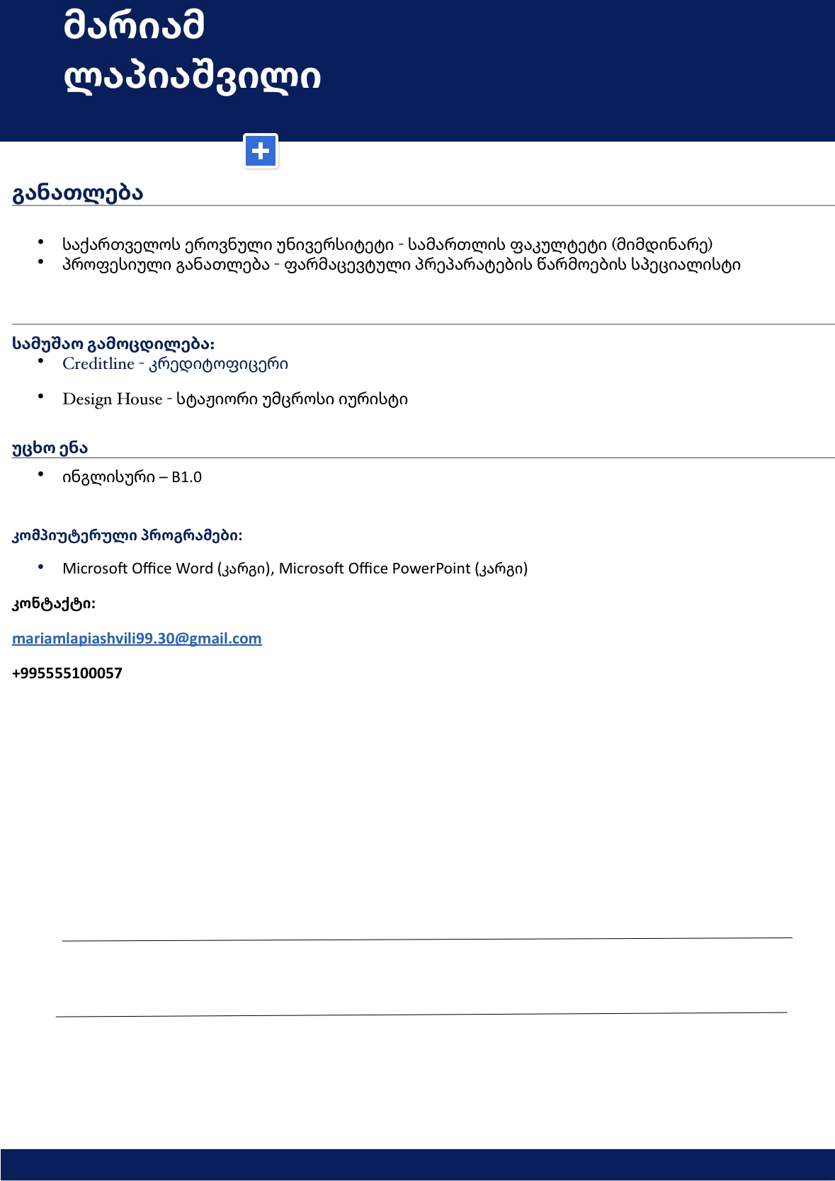 სპეციალობა : ლაბორატორიული დიაგნოსტიკა